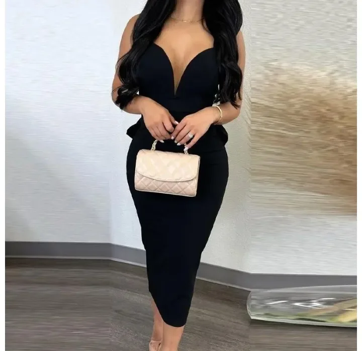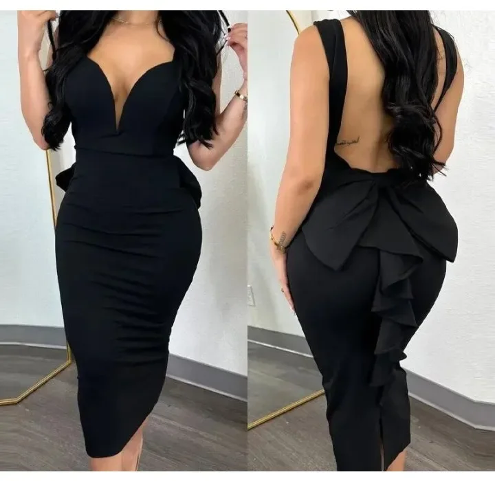 Dress for Women Streetwear Elegant Solid Color Hip Wrap Open Back Deep V High Waist Split Bodycon Dresses 2024 Spring and Summer